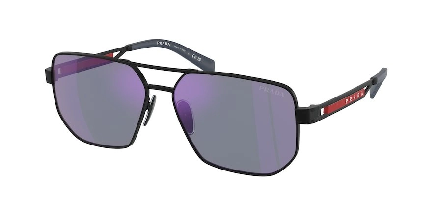 משקפי שמש פראדה ספורט לגברים דגם SPS 51Z 1BO-70A 59-14-145 בשילוב צבע שחור עם עדשות בצבע Dark Blue Mirror Violet. מסגרת מתכת.